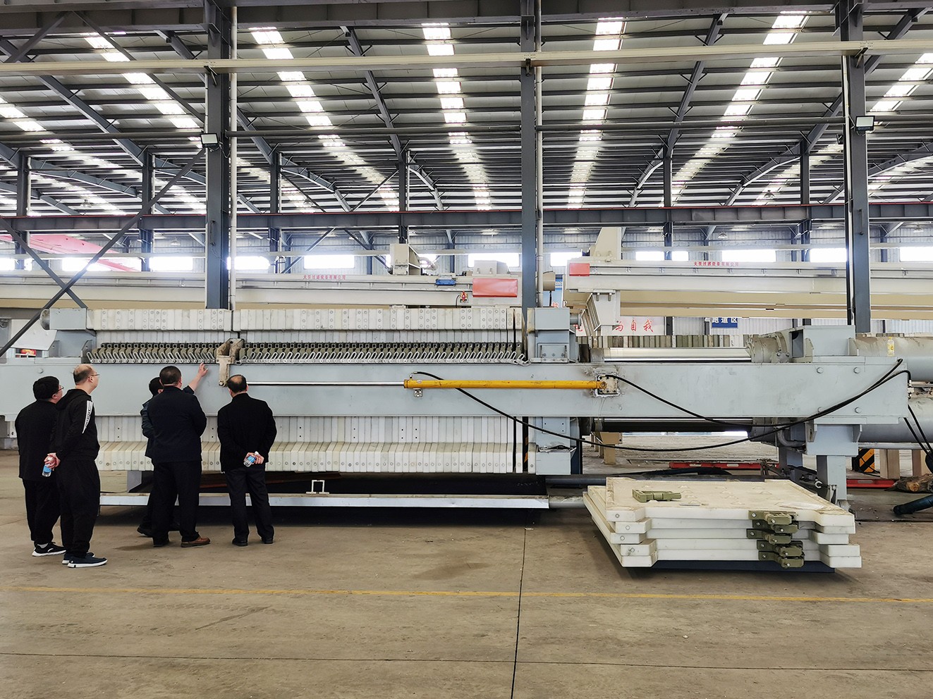 2023年(nián)3月8日(rì),吉林合作夥伴(bàn)親臨91抖阴下载環保,91抖阴下载環保技術部劉總、楊總及各部門工作人員的陪同下,參(cān)觀我(wǒ)司板框壓濾機工廠生產車間(jiān)、組裝車間、成品(pǐn)車間,在參觀(guān)過程(chéng)中,我司陪同人員給客戶進行了詳細的產品介紹,並對客戶(hù)提出的疑問進行了詳細解答。豐富的行業知識和有素的工作能力,也(yě)為客戶留下了深刻印象。